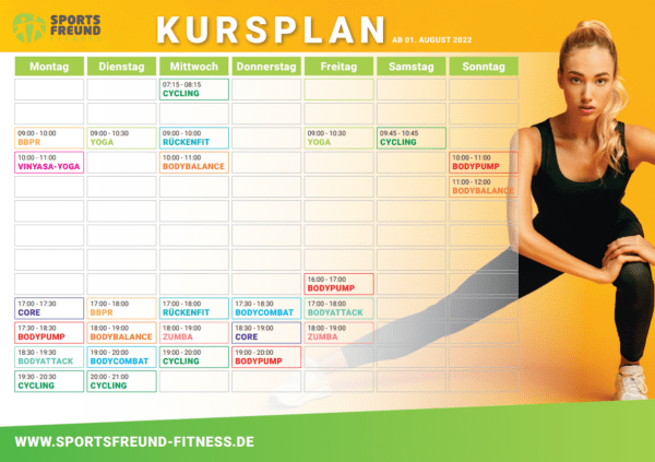 Les Mills „Bodypump“ ist ein Ganzkörper Workout mit Fokus auf Übungen mit einer hohen Anzahl von Wiederholungen. Ein Langhanteltraining mit mitreißender Musik, dass alle Muskelgruppen beansprucht und Deinen gesamten Körper kräftigt und strafft. Das Trainingsgewicht bestimmst Du selbst. Für jedes Fitnesslevel geeignet.